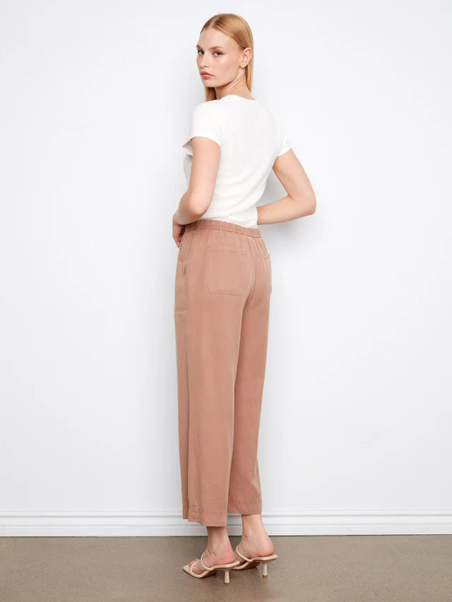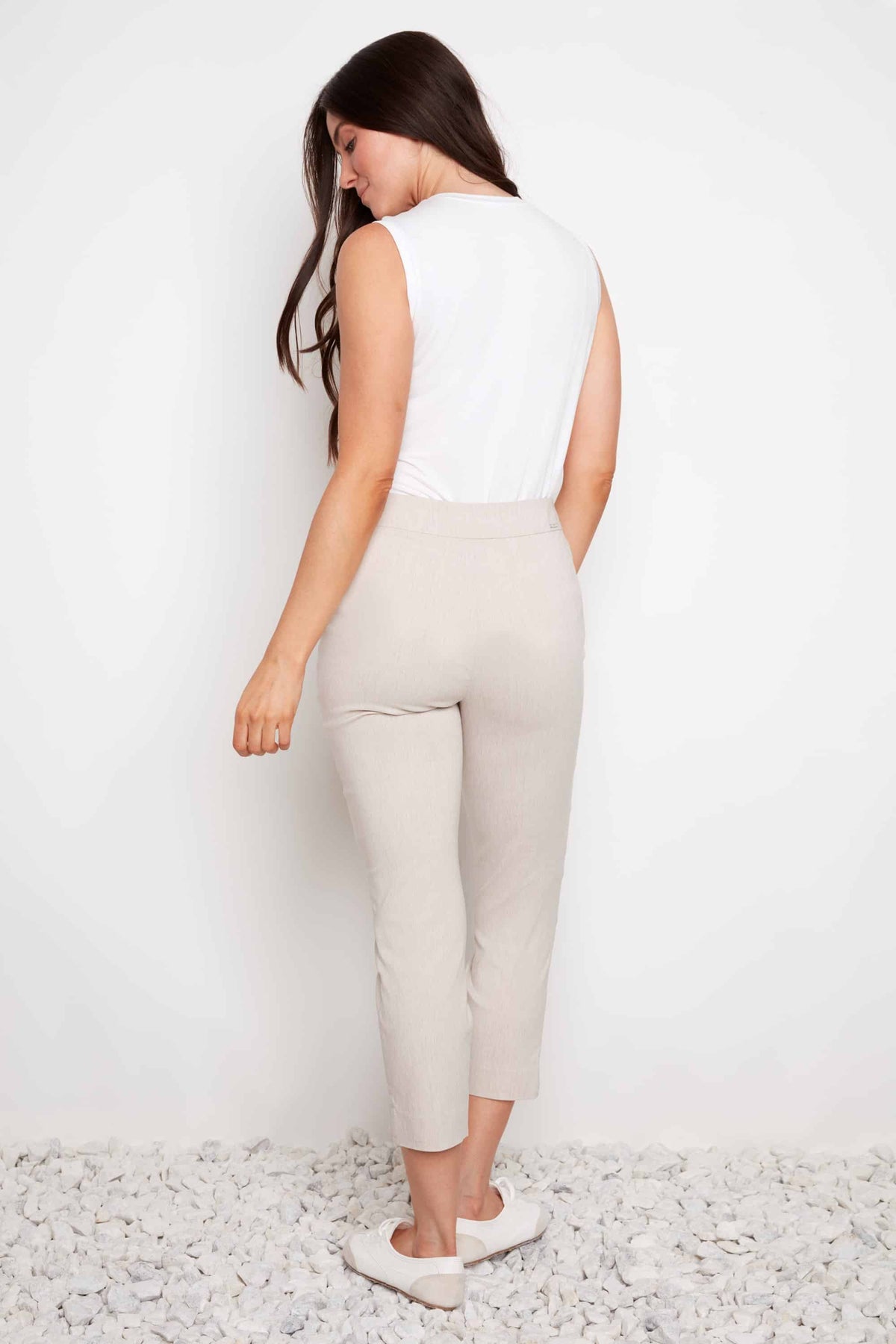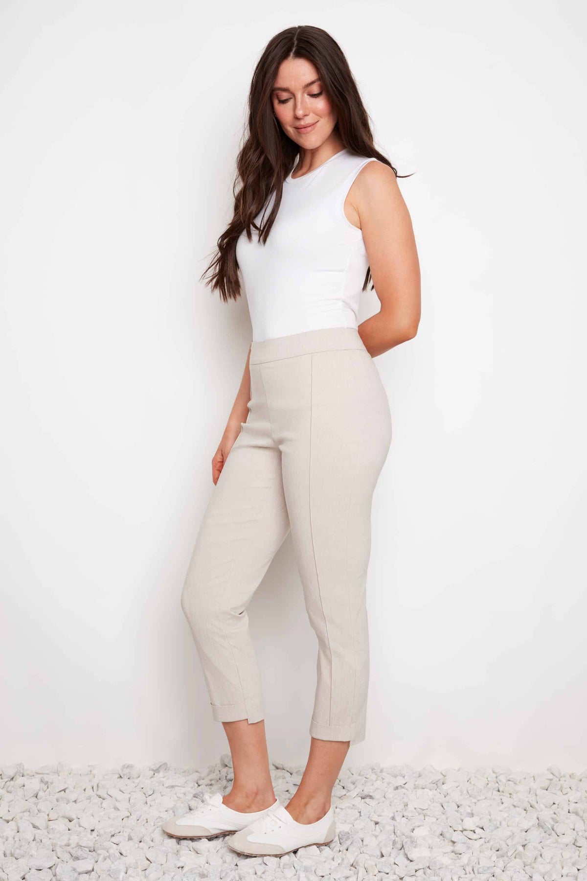 - Encased elastic waistband with belt loops