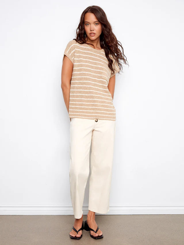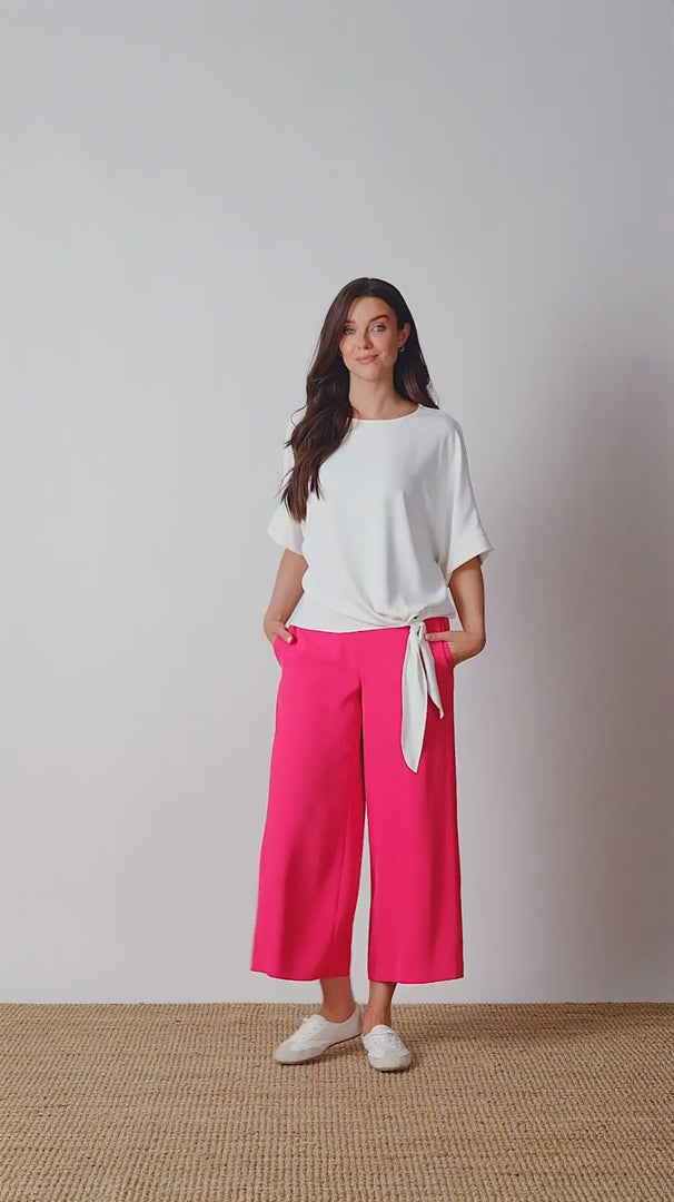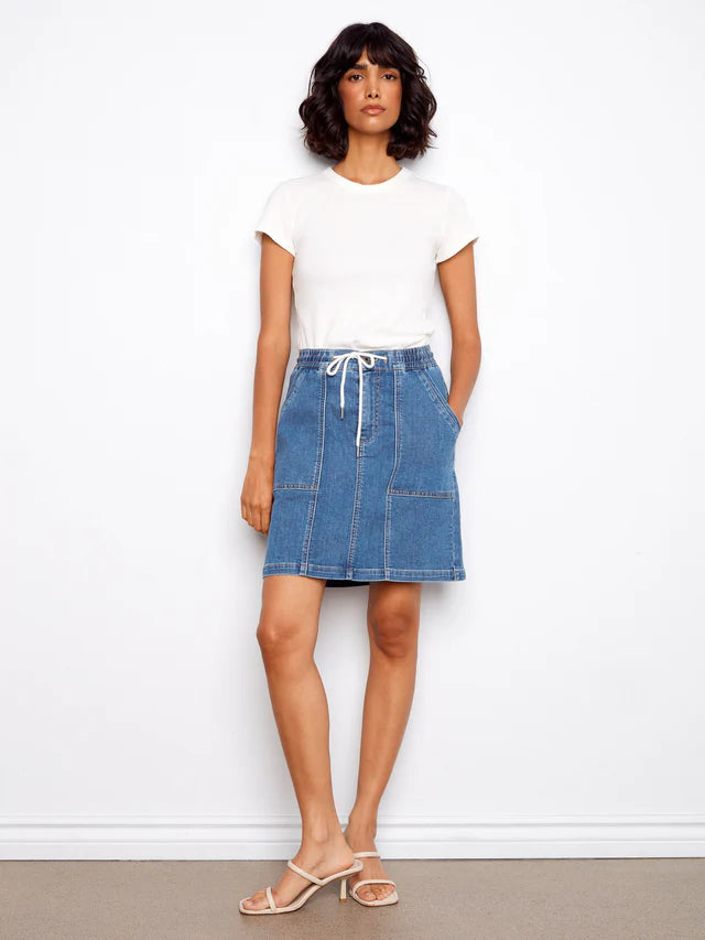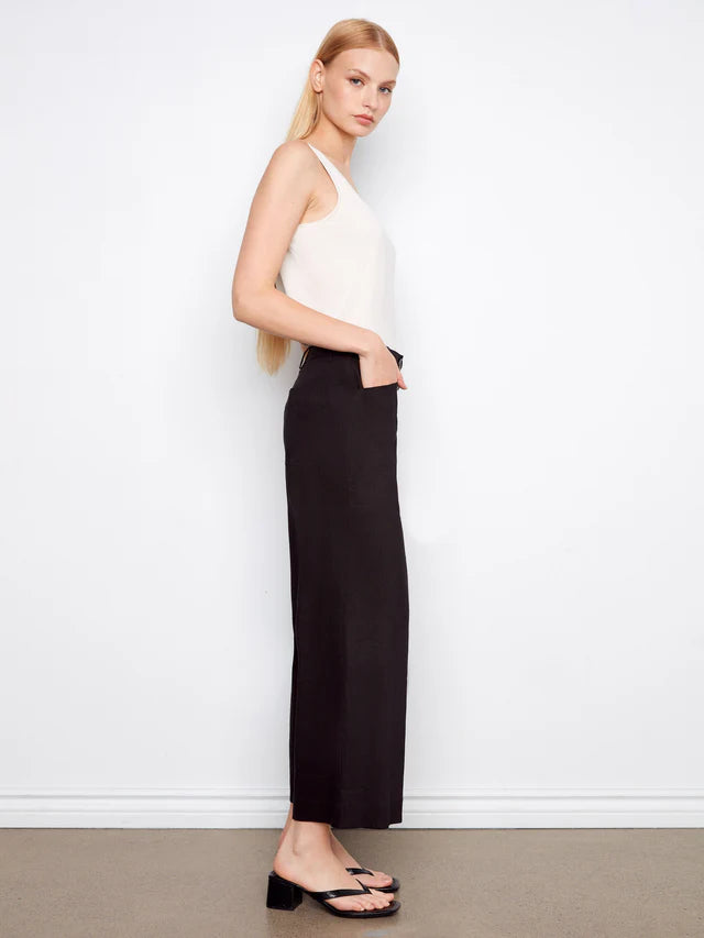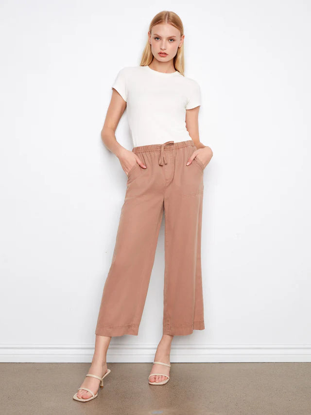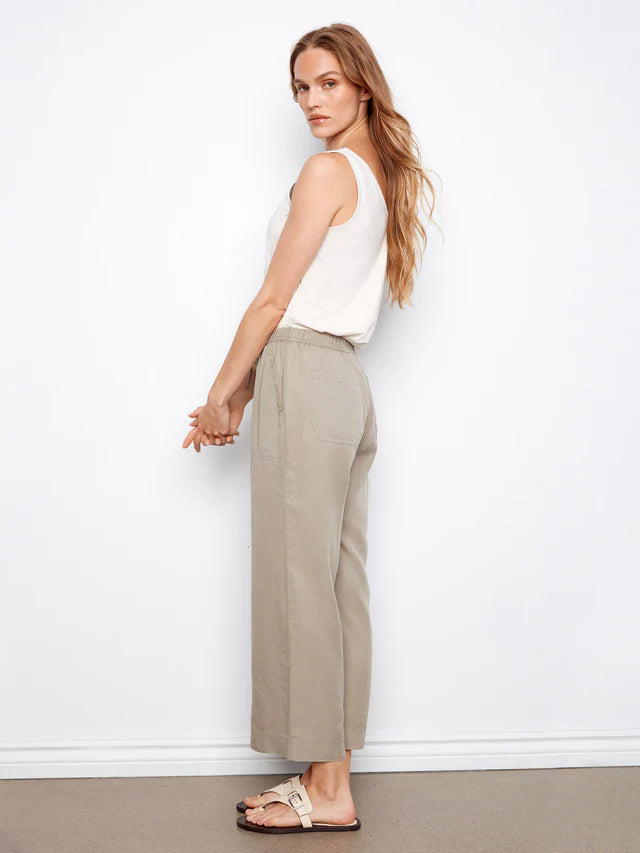 - Encased elastic waistband with belt loops