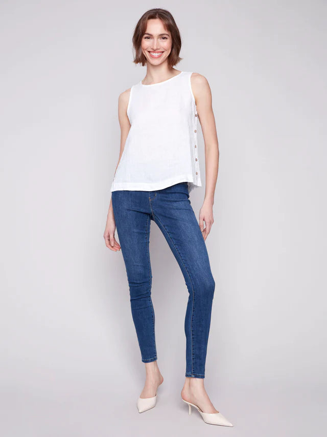 - Working button with faux fly