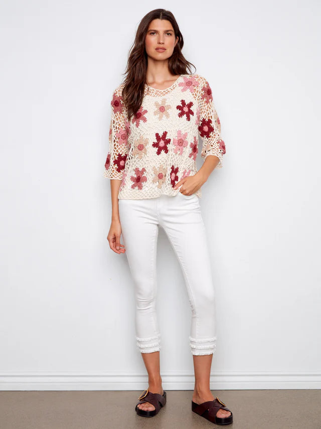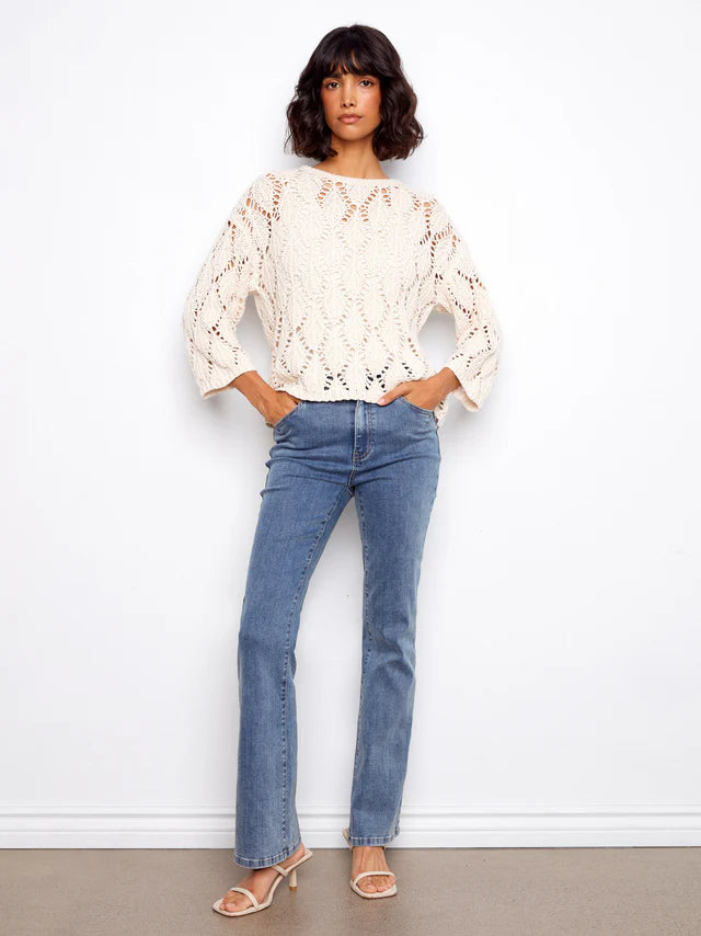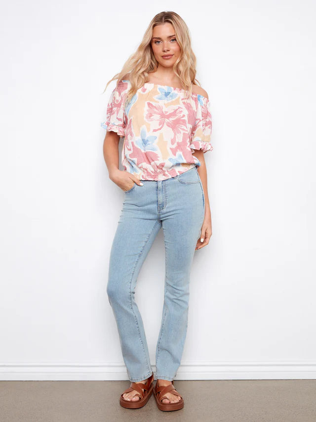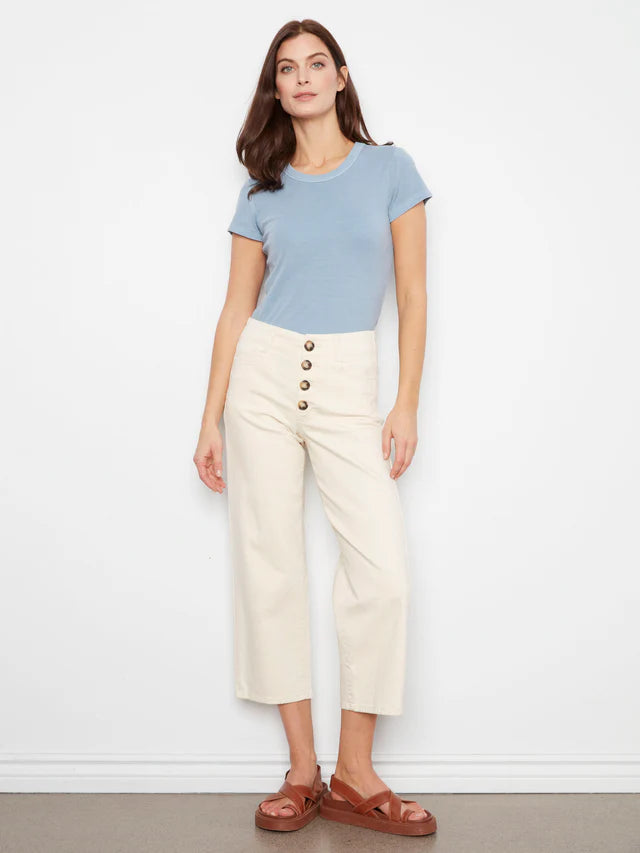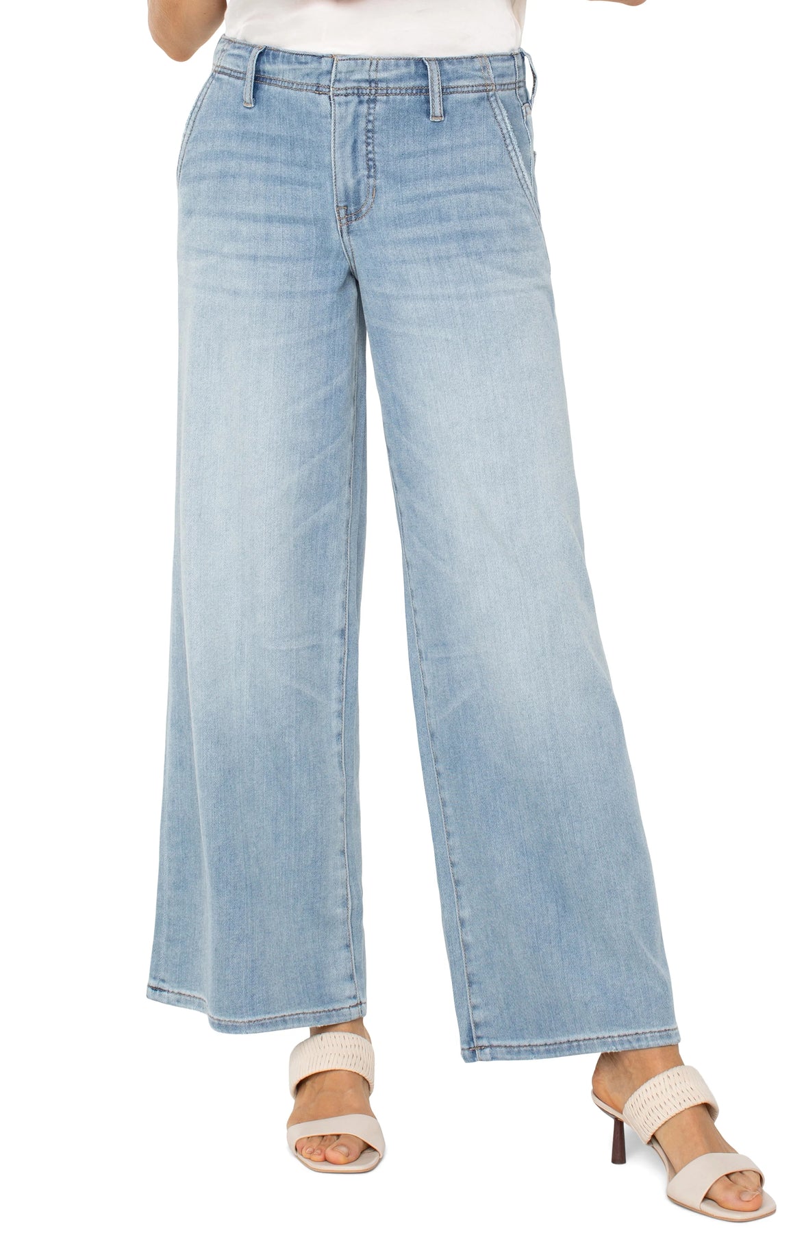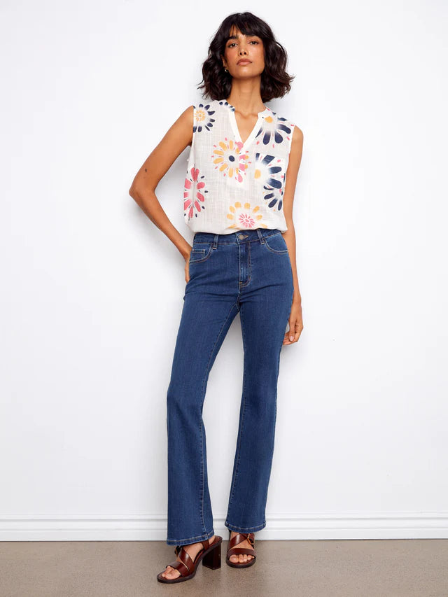 Designed for ease with a modern finish, this mid-rise crop flare features a signature pull-on waistband with a smooth, flattering fit. The tulip back detail adds a unique touch for an elevated take on everyday denim.